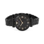 Le boîtier et le bracelet de cette montre sont fabriqués en acier inoxydable robuste, recouvert d’un placage PVD (Physical Vapour Deposition) noir intense. Ce traitement confère à la montre une résistance accrue aux rayures et une couleur profonde et durable.