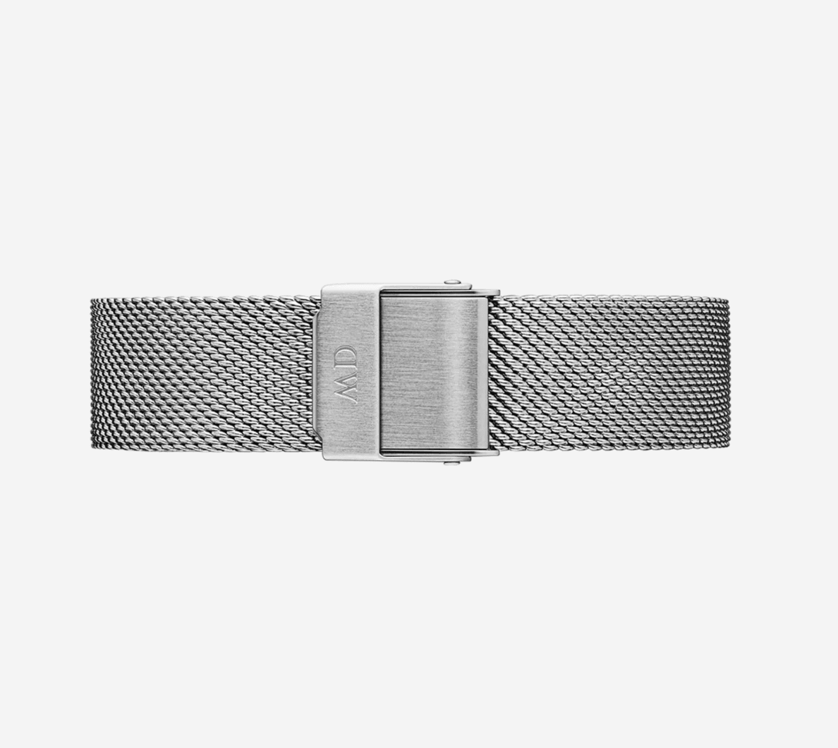 Le système magnétique maintient le bracelet fermé avec une force suffisante pour une sécurité totale tout en permettant une ouverture et fermeture aisée d’une seule main sans aide externe. Cette praticité quotidienne supérieure au cuir qui exige manipulation à deux mains rend le port de cette montre mesh argent plus agréable et intuitif même le matin pressé. Le fermoir magnétique discret gravé « DW » se fond dans la continuité du mesh argent, préservant l’esthétique total silver monochrome sans élément visuel perturbateur qui casserait l’harmonie.