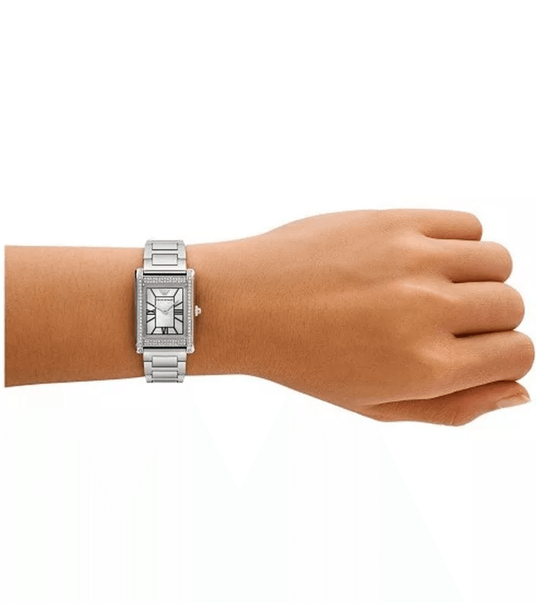 Vous recherchez l’élégante montre Emporio Armani AR11625 au Maroc ? Ce modèle « Genni » est un chef-d’œuvre de finesse et de raffinement. Avec son boîtier rectangulaire de 22mm, sa finition argentée éclatante et sa lunette sertie de cristaux, c’est la montre bijou par excellence pour la femme marocaine.