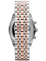 Le bracelet de la Montre Emporio Armani AR5999 est une pièce maîtresse. Sa construction en acier alterne des maillons extérieurs argentés et des maillons centraux de style « ingénieur » en or rose. Ce design complexe ajoute non seulement une touche de sophistication et une texture visuelle riche, mais il assure également un confort et une souplesse remarquables au poignet. C’est un bracelet qui témoigne d’une grande qualité de fabrication et qui élève le design général de la montre.