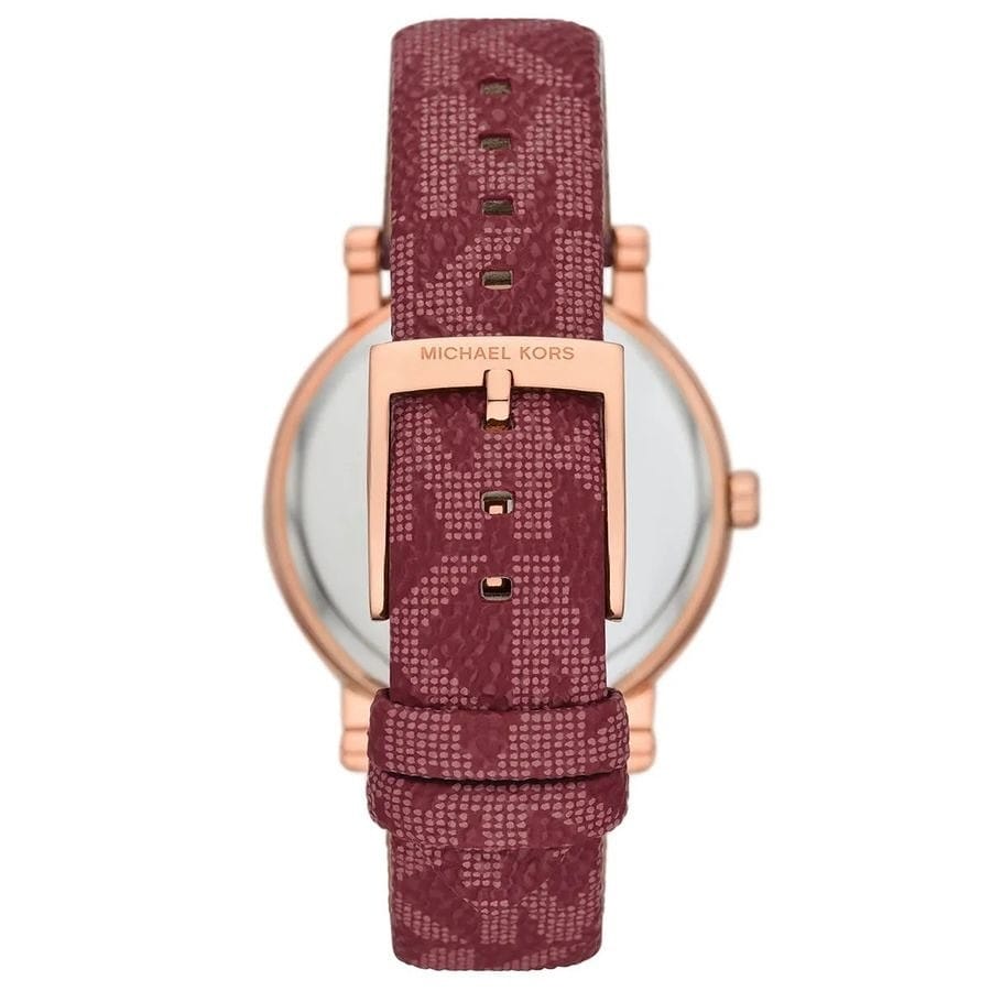 Mais la star de ce modèle est son bracelet en cuir rouge. Ce n’est pas un cuir lisse ordinaire : il est subtilement embossé du monogramme « MK », ajoutant une touche de luxe et de texture. C’est la montre femme cuir rouge ultime pour les fans de la marque.