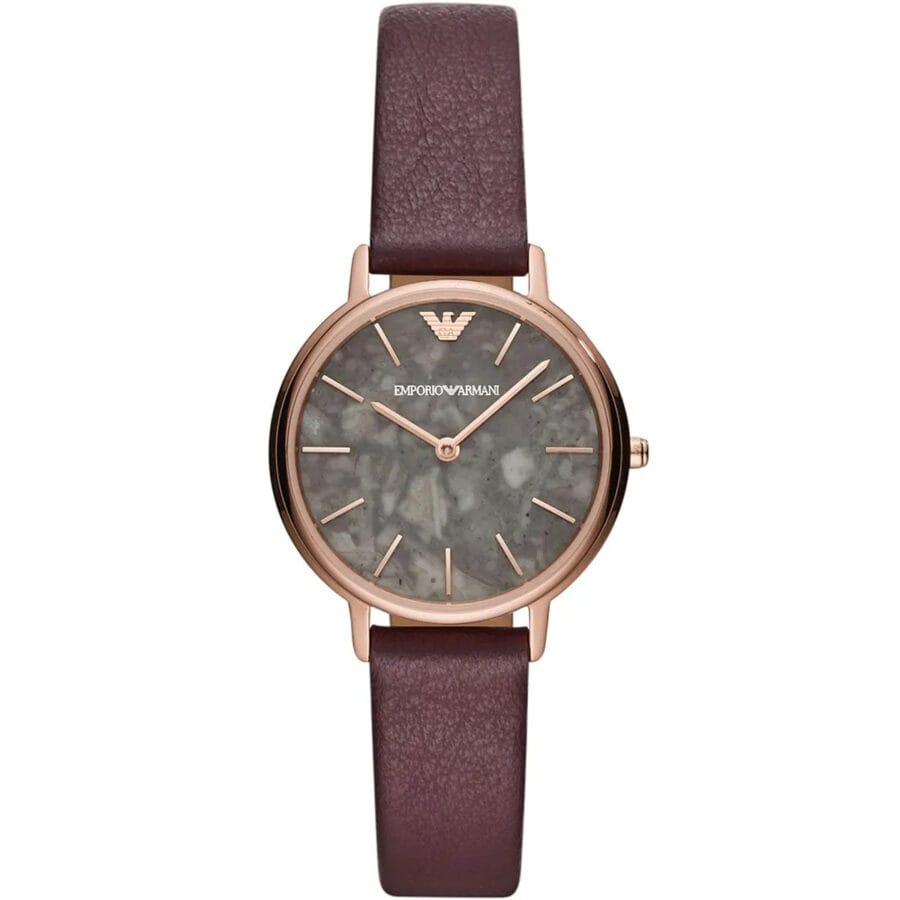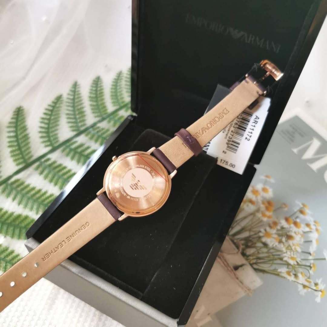 Sur le marché actuel, les montres sur bracelet acier sont légion, mais les véritables montres en cuir de haute couture se font plus rares. La Montre Femme Emporio Armani AR11172 est une exception précieuse dans notre catalogue. Nous avons sélectionné ce modèle spécifiquement pour son bracelet en cuir véritable d’une couleur sublime et peu commune : un prune profond (ou aubergine) qui tire vers le bordeaux.