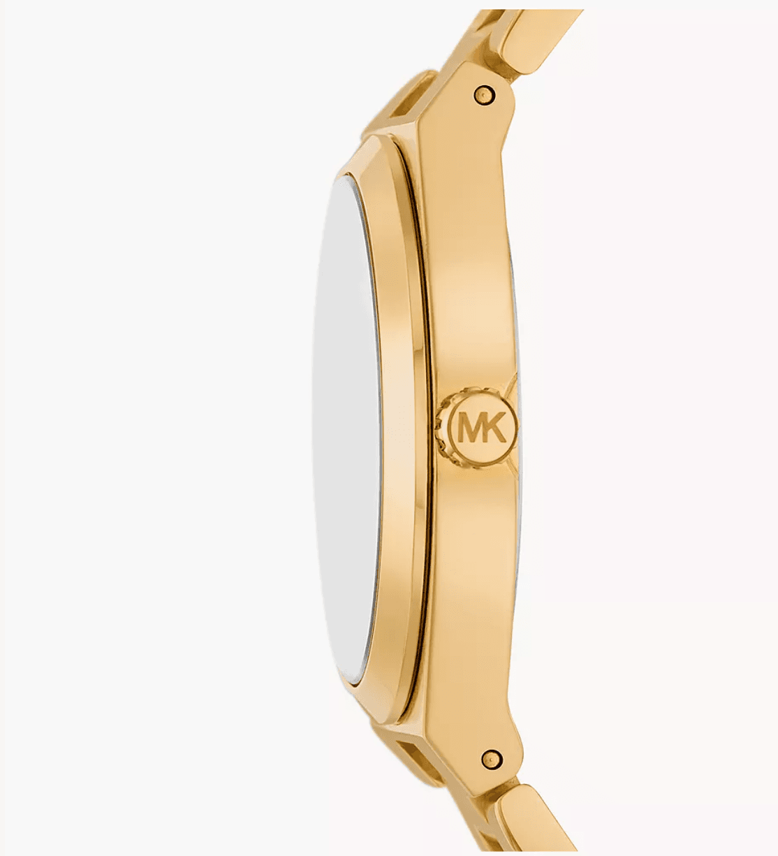 Contrairement aux modèles bicolores, cette MK7391 assume pleinement son caractère luxueux avec un traitement « Gold-Tone » intégral. Le boîtier de 37mm et le bracelet à maillons sont entièrement fabriqués en acier inoxydable doré, offrant un éclat chaud et captivant.
