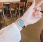Le cadran est en nacre naturelle (mother-of-pearl). Cela signifie que chaque pièce est unique. Les reflets, la texture et l’intensité du bleu peuvent légèrement varier, ce qui garantit que votre montre est un modèle exclusif que personne d’autre ne possède à l’identique.