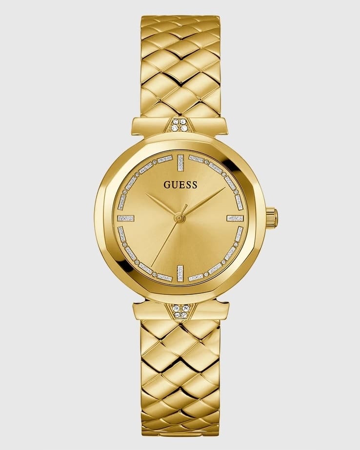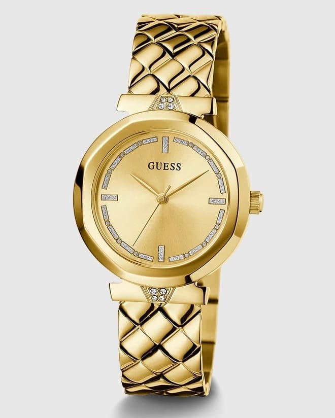 Cette montre Guess femme dorée bracelet texturé est plus qu’un simple accessoire, c’est une extension du style personnel.