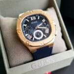 Pour accentuer son caractère sportif et assurer un confort maximal, la Montre Guess GW0571G1 est équipée d’un bracelet en silicone noir. C’est le matériau idéal pour un style de vie actif : léger, souple, résistant à l’eau et à la transpiration, il est parfait pour un port quotidien, même lors d’activités sportives. Sa texture gaufrée ajoute une touche de sophistication et rappelle les motifs du cadran. C’est un bracelet silicone confortable et durable.