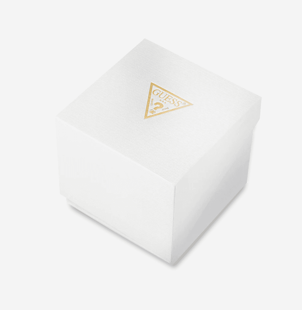 L’approche technique de GUESS sur ce modèle met en avant la pureté des lignes géométriques. Le boîtier rectangulaire, avec sa largeur minutieusement calculée de 24 mm, offre une silhouette élancée et hautement féminine. C’est une proportion idéale qui habille le poignet sans l’alourdir.