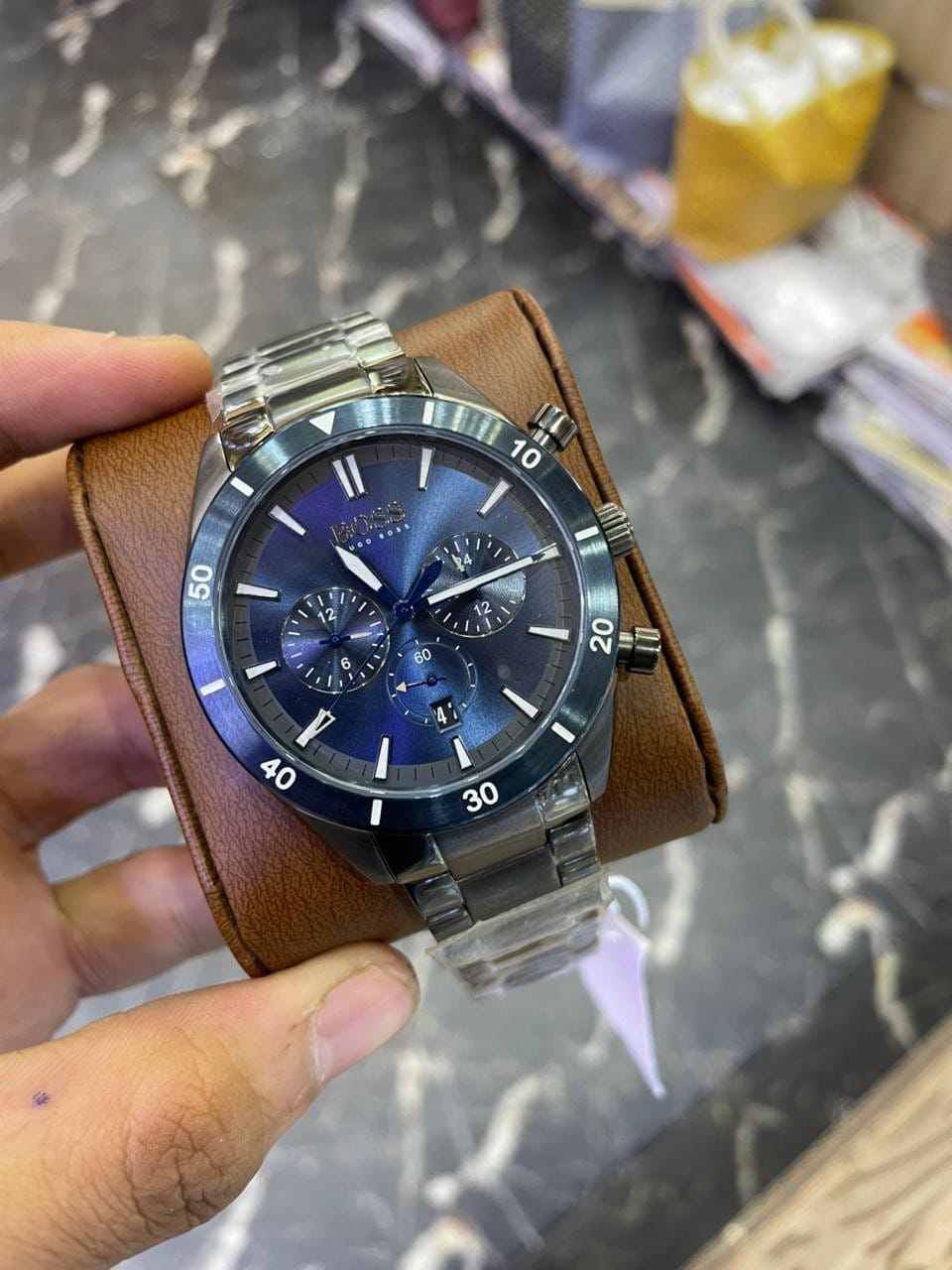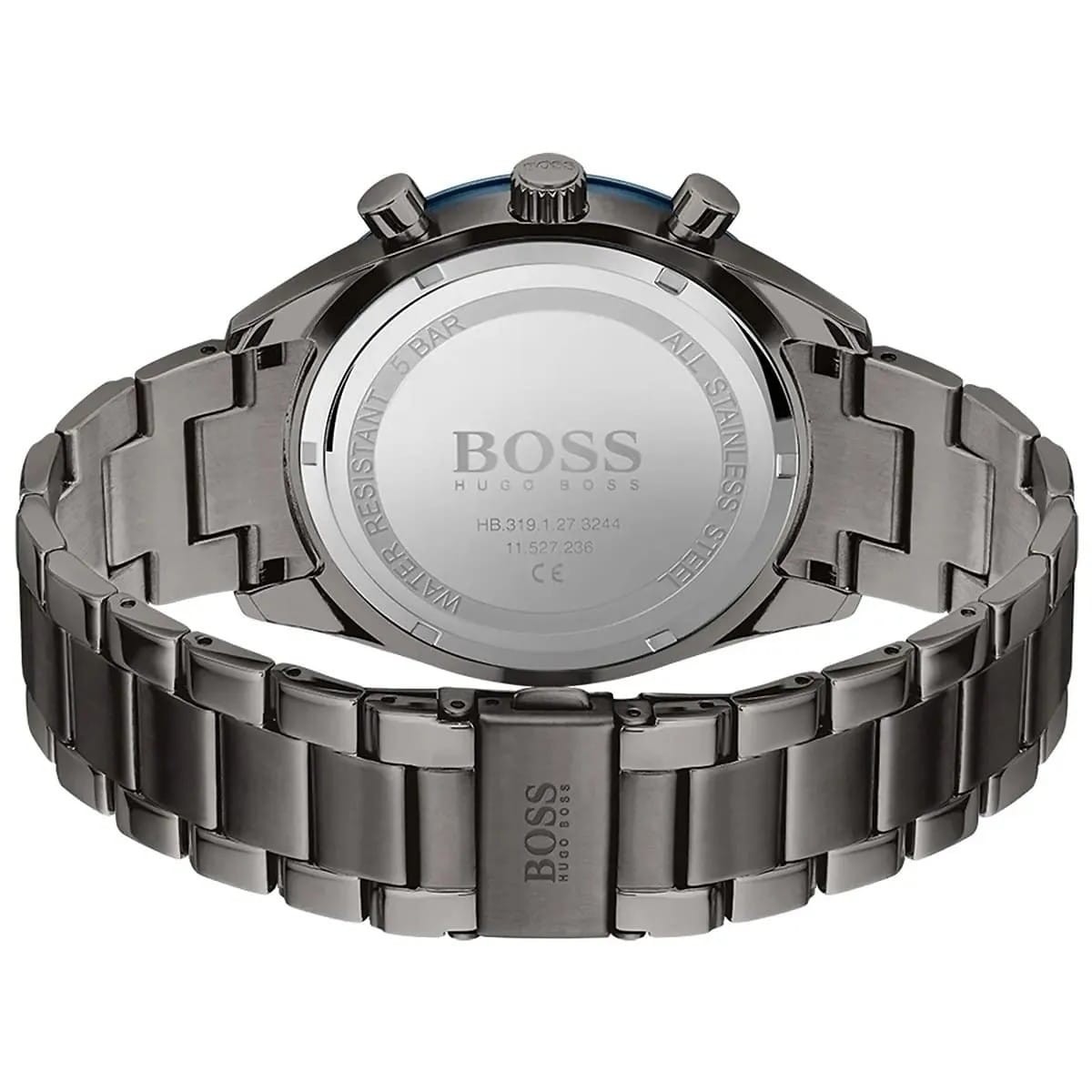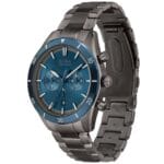 Pour contraster avec le gris sombre du boîtier, Hugo Boss a choisi un cadran d’un bleu profond avec une finition « soleillée ». Cela signifie que la couleur change subtilement selon la lumière, passant d’un bleu nuit presque noir à l’ombre, à un bleu électrique éclatant sous le soleil du Maroc.