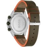 Cette pièce est animée par un mouvement chronographe à quartz précis. Le boîtier de 44 mm en acier inoxydable est protégé par un verre minéral résistant. Le bracelet en cuir vert avec doublure orange offre un confort optimal. Son étanchéité de 5 ATM protège votre Montre Hugo Boss Cloud 1514018 des éclaboussures du quotidien.