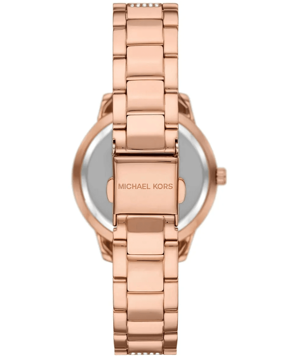 Cette pièce est animée par un mouvement à quartz d’une grande fiabilité. Le boîtier de 34 mm est protégé par un verre minéral résistant. Une étanchéité de 5 ATM protège votre Montre Michael Kors Tibby MK4685 des éclaboussures accidentelles.